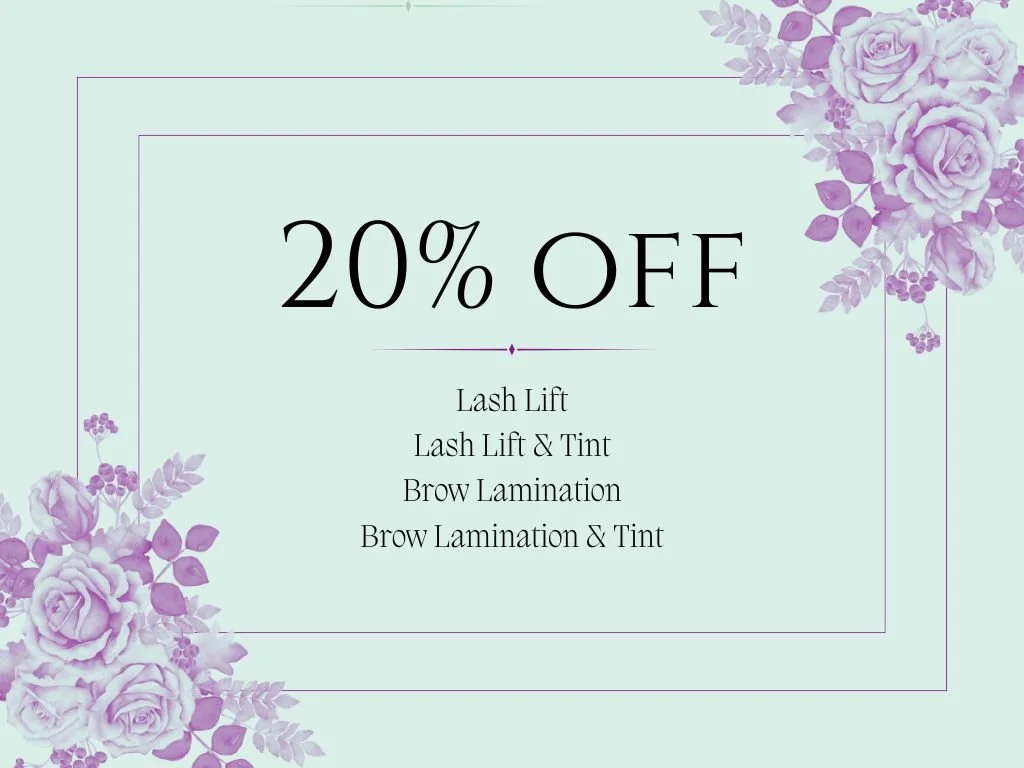 These discounts are offered and honored year-round. While the New Client discount can only be used once, the referral discount can apply for each individual referred to the studio – meaning it can be applied multiple times. Please note that discounts cannot be combined in a single appointment or used with gift certificates. However, they can be held for future use. The percentage – 15% or 20% – discounted from the service is not specific to whether it applies as a New Client or Referral, instead, the discount amount is related to the service booked. Qualifying services for lash and brow treatments with their corresponding discounted amounts are listed above.